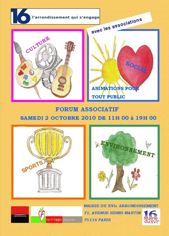 2 octobre : forum des associations du 16ème à la Mairie