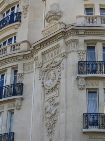 En tout cas son souvenir reste vivace dans cette rue puisque gravé dans la pierre comme en atteste ce très beau haut relief le représentant de profil en médaillon sur l'une des belles façades des nombreux immeubles cossus qui bordent l'artère. Charme discret d'une bourgeoisie si souvent décrite dans ces oeuvres théâtrales comme littéraire (le plus populaire de ses ouvrages : Le roman d'un jeune homme pauvre parut en 1858). En tout cas "l'écrivain bourgeois" comme on l'a si souvent surnommé, couvert d'honneurs et de distinctions par Napoléon III, s'accorde il faut le reconnaître, assez bien avec l'esprit de cette rue et de ce quartier.