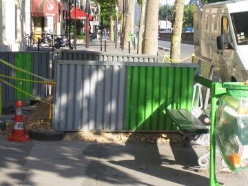 au sud de l'arrondissement les trottoirs sont éventrés ça et là, aux pieds des
