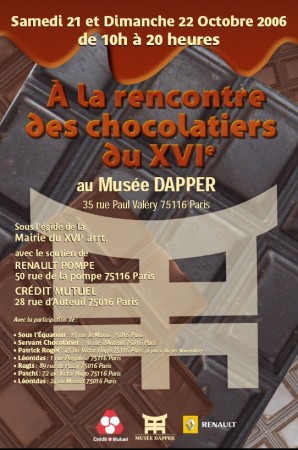 21 et 22 octobre, un rendez-vous incontournable pour tous les amateurs de chocolats au Musée Dapper, 35, rue Paul Valéry (Métro Victor Hugo).