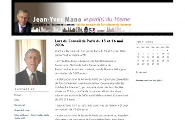 Hier nous apprenions en même temps que la parution d'un nouveau journal d'information municipale, Le Pari(s) du Seizième par Jean-Yves Mano, principal élu d'opposition du 16ème et adjoint au Maire de Paris en charge du Logement, le lancement de son blog. Nous ne nous prononcerons pas sur l'intérêt d'un énième journal municipal dans un arrondissement qui en compte déjà beaucoup, même si cela va dans le sens de la pluralité d'opinion et d'information. En période préélectorale c’est tout à fait habituel de sortir ce type de "journal d’information" sur papier.